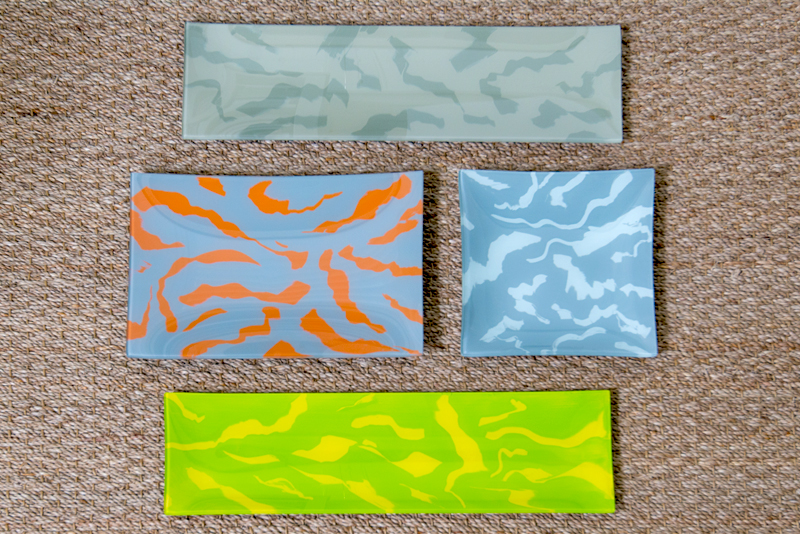 We produce all our products locally. Because each of our pieces are done by hand with a pattern style, not a printed process, each piece is unique and one of a kind. The process we use, took about 5 months to develop, and consist of 8 to 10 steps depending on style and color.
