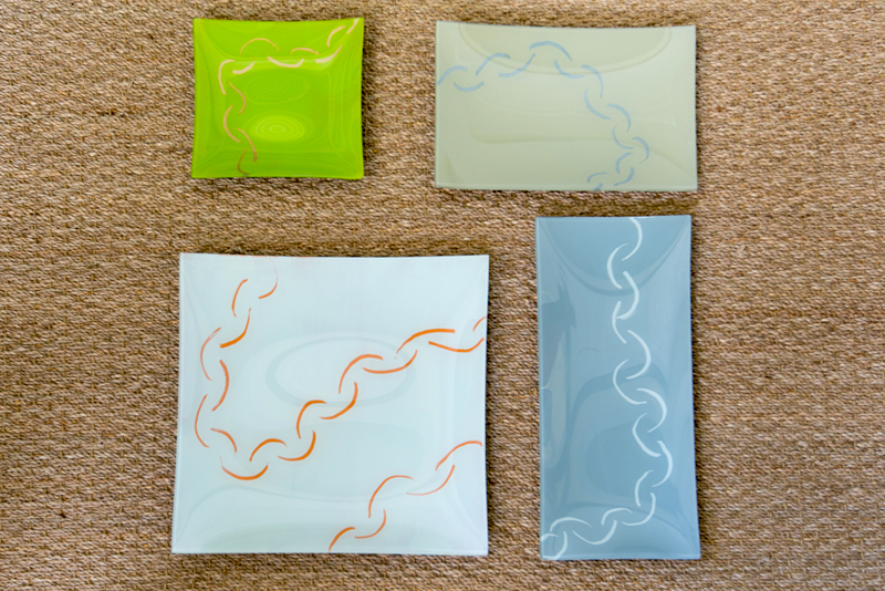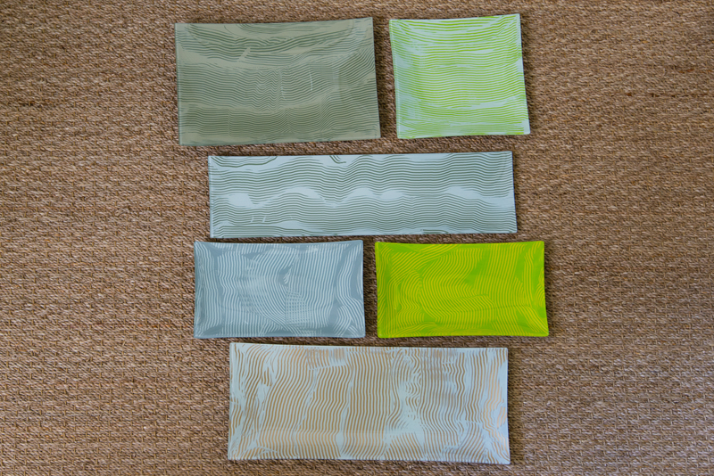 We produce all our products locally. Because each of our pieces are done by hand with a pattern style, not a printed process, each piece is unique and one of a kind. The process we use, took about 5 months to develop, and consist of 8 to 10 steps depending on style and color.